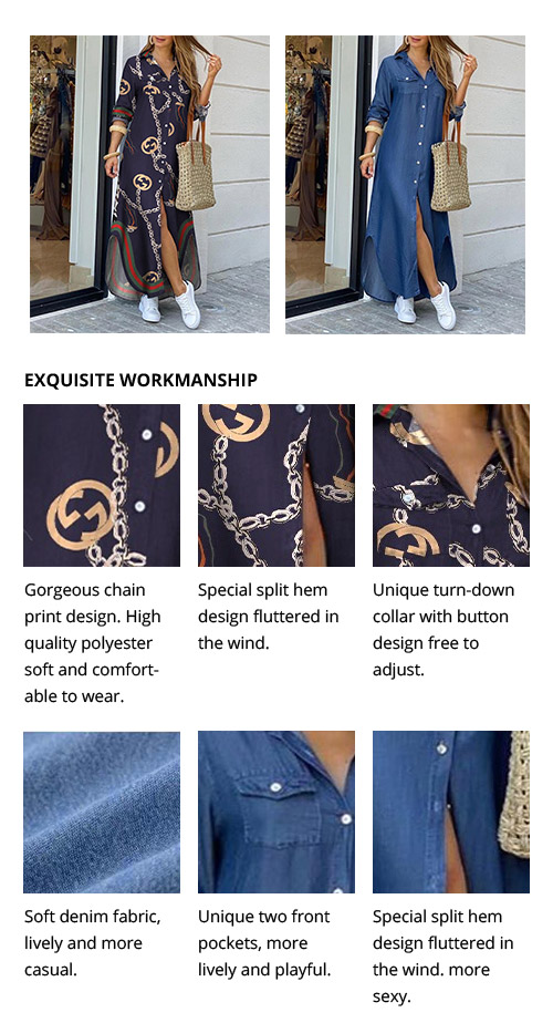 Design:This classic print shirt dress, with unique design,turn-down collar, maxi length, with buttons. Elegant long shirt dress, unique design, make you more beautiful, sophisticated, sexy and elegant.